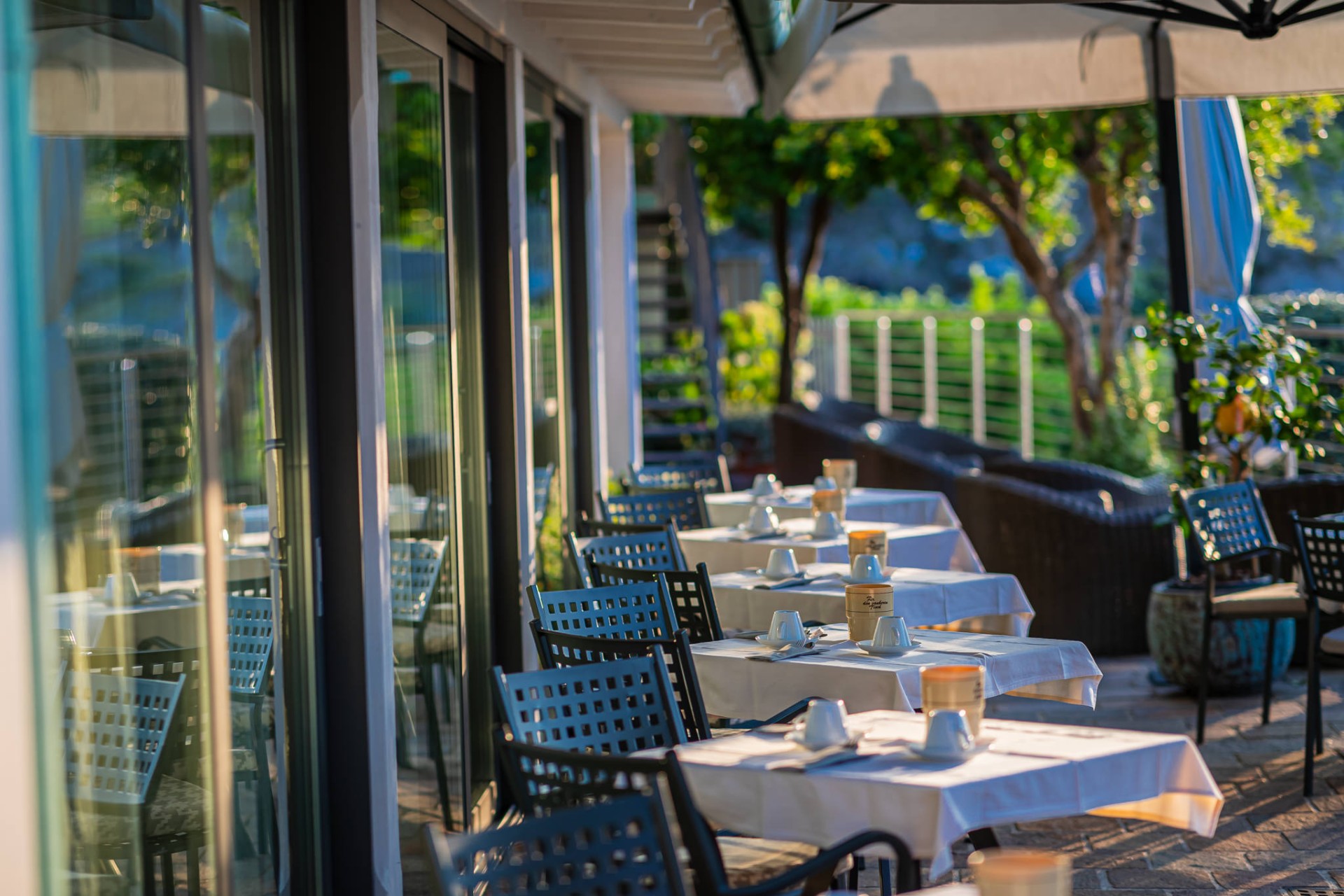 Unsere Terrasse ist der ideale Ort, um den Tag mit einem Frühstück am See zu beginnen, ein Mittagessen im Freien zu genießen oder den Abend mit einem romantischen Dinner und einem Drink unter den Sternen ausklingen zu lassen – in einer stimmungsvollen, intimen Atmosphäre.