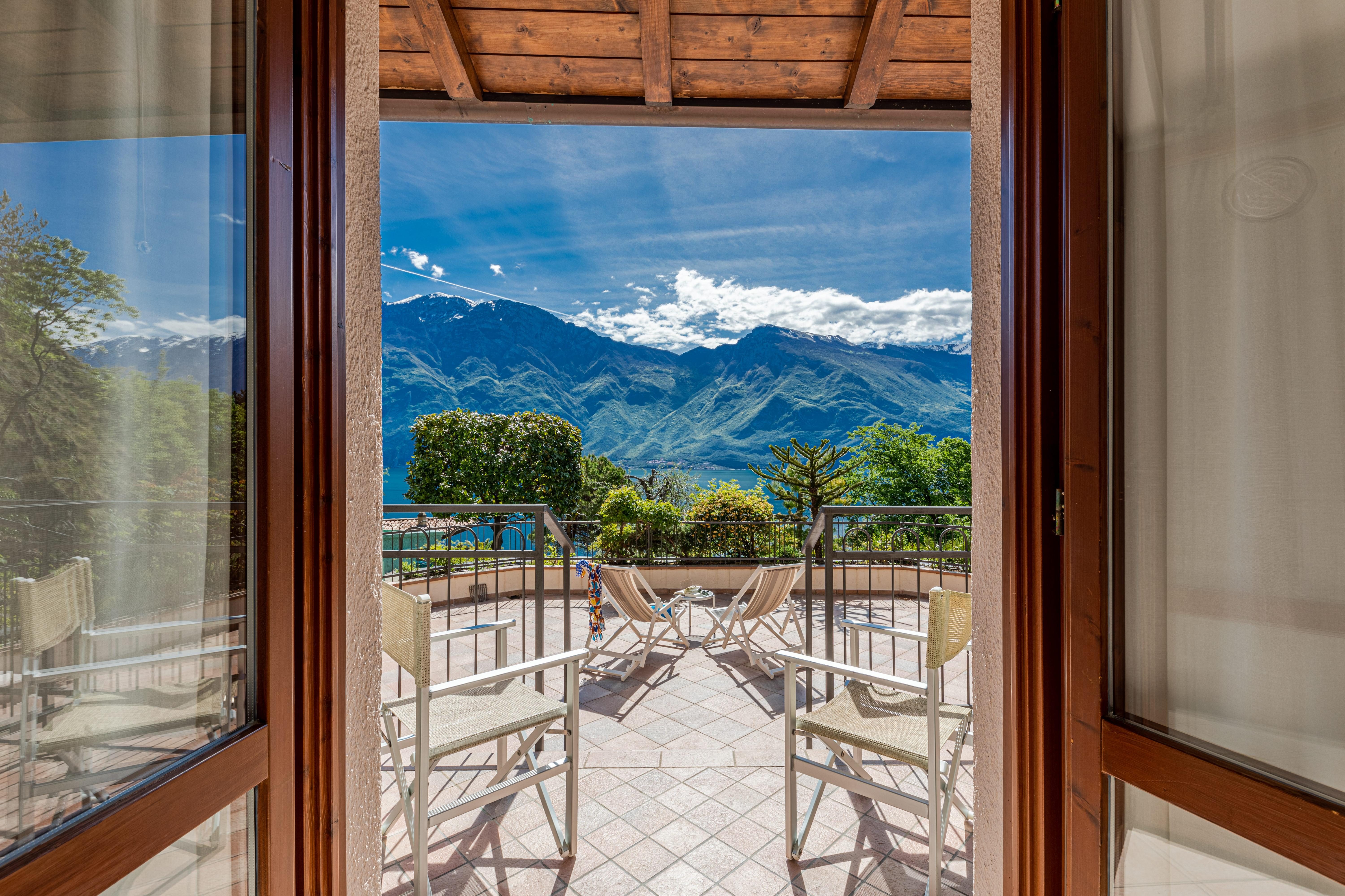Neuheit 2026. Vollständig renovierte Zimmer mit überdachtem Balkon und atemberaubendem Panoramablick auf den Gardasee.