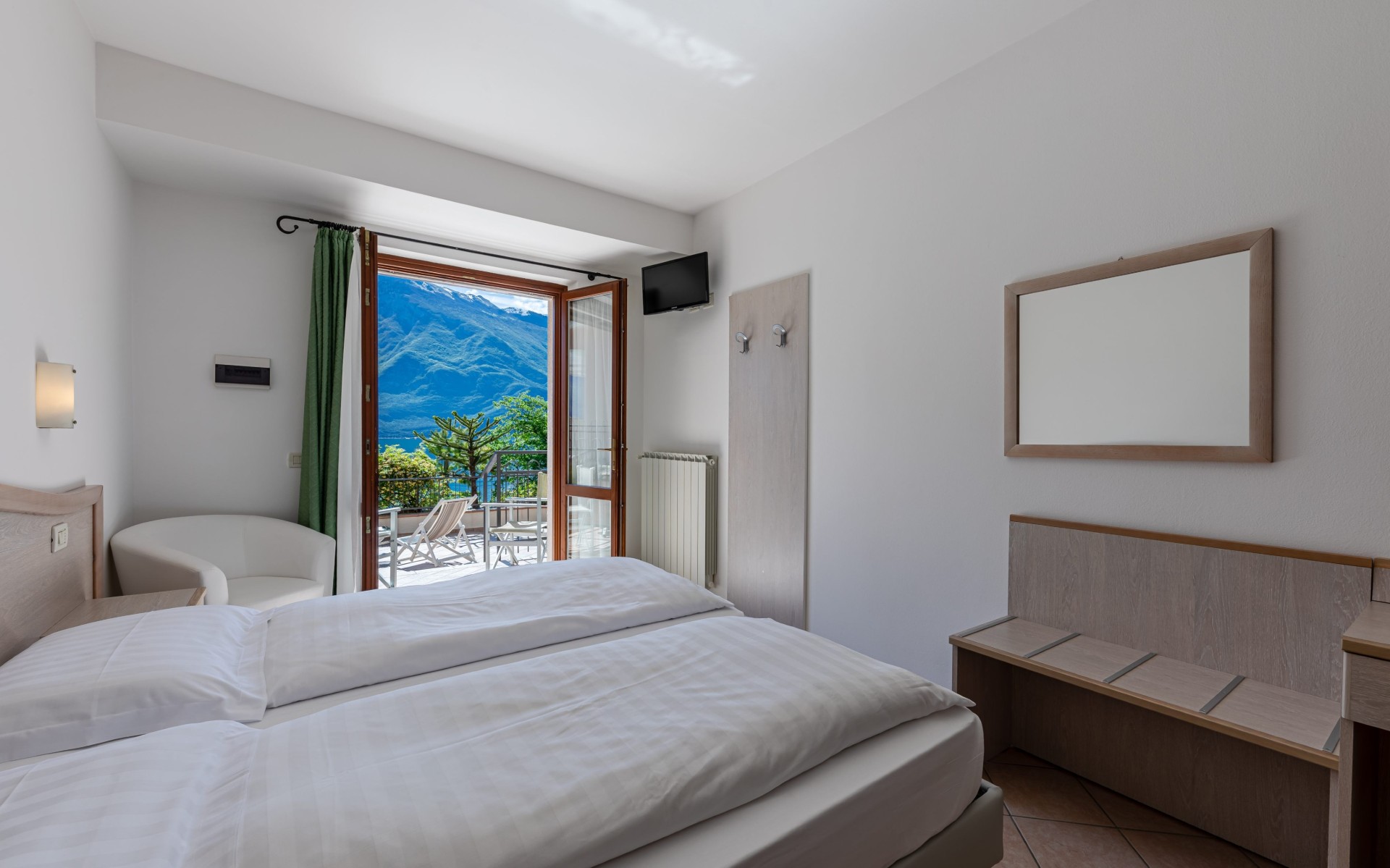 Hell und gemütlich – unsere Comfort-Zimmer bieten eine entspannte Atmosphäre, mit direktem Zugang zum romantischen Garten oder mit einem angenehmen seitlichen Blick auf den Gardasee.