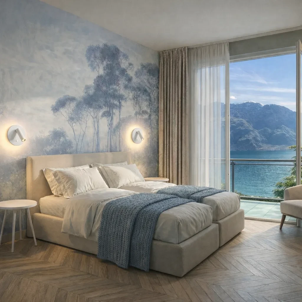 Hinter der Tür Ihres Zimmers erwartet Sie ein Zufluchtsort des Friedens. Jedes Detail wurde mit Wärme und Achtsamkeit gestaltet: harmonische Farben, sanftes Licht, das durch die Fenster fällt. Hier verlangsamt sich die Zeit, die Gedanken werden leicht – und Komfort wird zum Erlebnis.