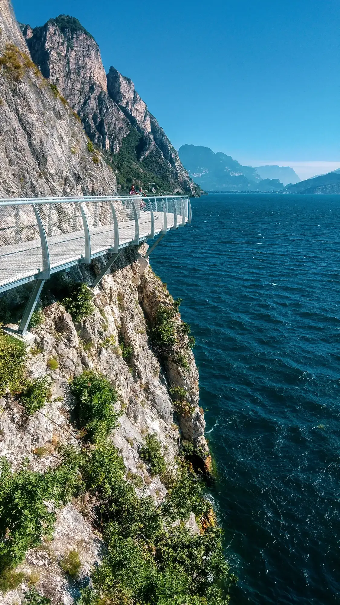 Der 14. Juli 2018 ist ein Datum, das in die Geschichte des Gardasees eingehen wird: In Limone wurde der neue Abschnitt des schwebenden Rad- und Fußwegs über dem See eingeweiht – ein Meisterwerk der Ingenieurskunst, das sich harmonisch in die Landschaft einfügt.