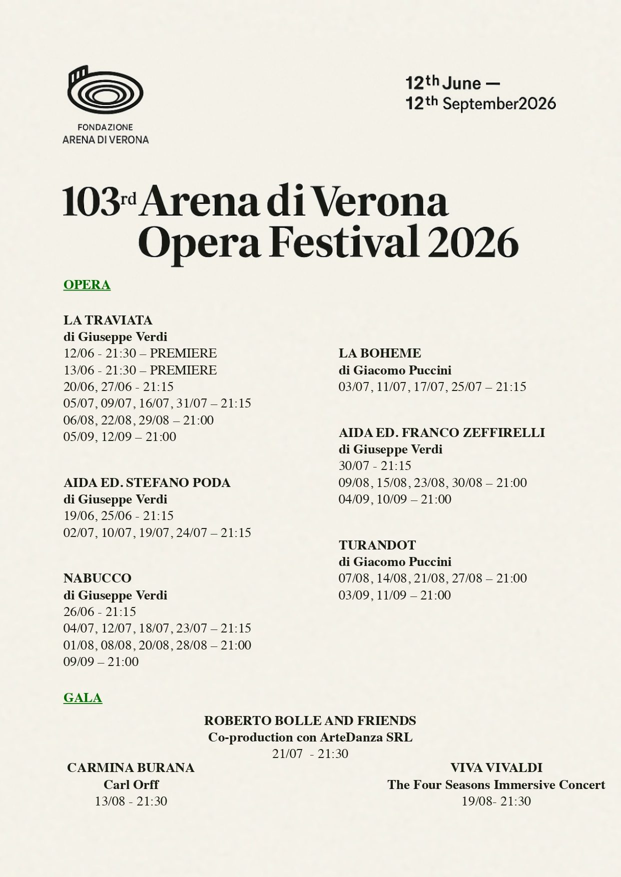 Musikfreunde und Showfreunde können nicht die Stadt verlassen, ohne einen Abend in der malerischen Arena di Verona verbracht zu haben.